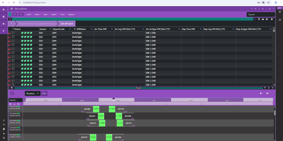 Just like our other Explorers, Slot Explorer brings together all related information and functionality in one place—covering loading, saving, visualisation, reporting, and validation. It leverages familiar components such as grids, Gantt charts, and calendars to make slot data clear and actionable. Users will also benefit from advanced tools for sorting, grouping, filtering, and exporting into multiple formats. Every data point is validated through our Business Logic Service (BLS) to ensure accuracy and compliance.